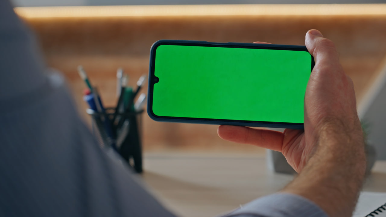 ویدیو فوتیج پرده سبز گوشی در دست در نمای نزدیک بصورت وبینار،با کیفیتHD،استوک ویدیو